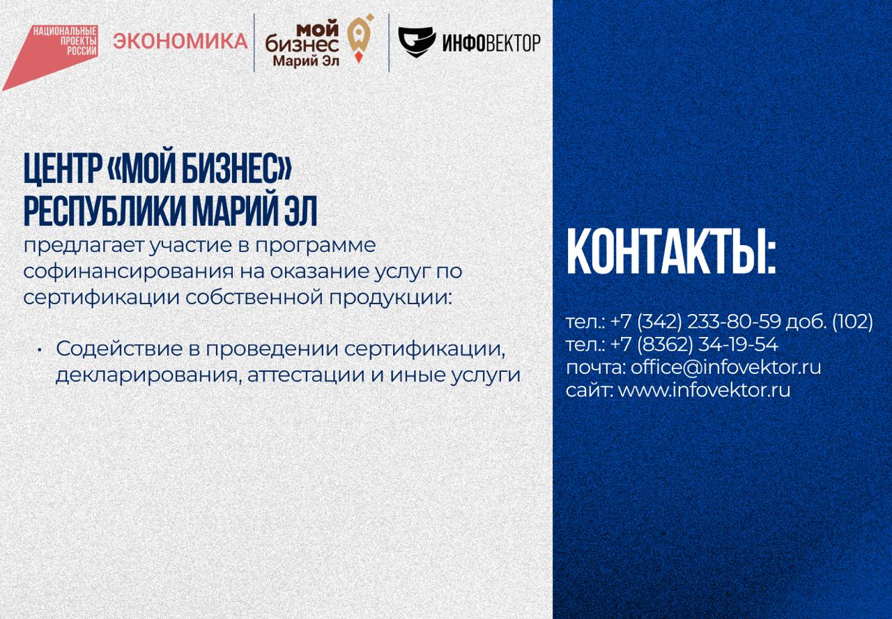Подробную консультацию можно получить в Центре «Мой бизнес»: ул. Эшкинина, д. 10б, офис 105 или по телефону в Йошкар-Оле 34-19-54.